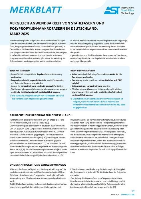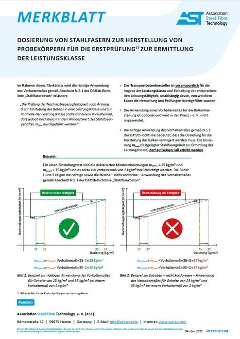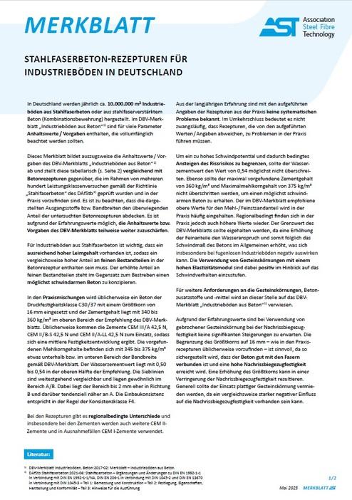 Die Mindeststahlfasergehalte basieren auf der Veröffentlichung „Empirischer Ansatz zur Bestmmung der Nachrissbiegezugfestgkeit“ (Quelle siehe Merkblatt).