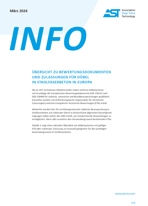 Jetzt aktuell überarbeitet. Alle Bewertungsdokumente und Zulassungen für Dübel in Stahlfaserbeton in Europa. Das ist eine wertvolle Übersicht und hilft Planern.