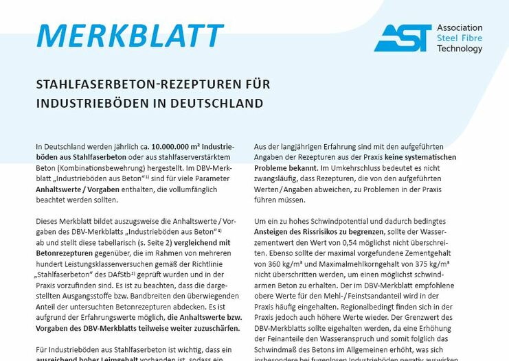 Das neue AST-Merkblatt "Stahlfaserbeton-Rezepturen für Industrieböden in Deutschland"