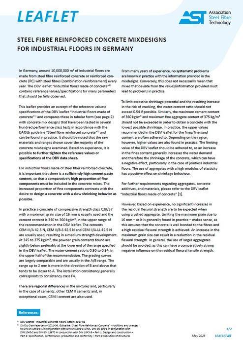 Steel Fibre Reinforced Concrete Mixdesigns for Industrial Floors in Germany